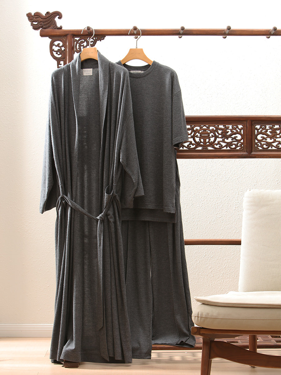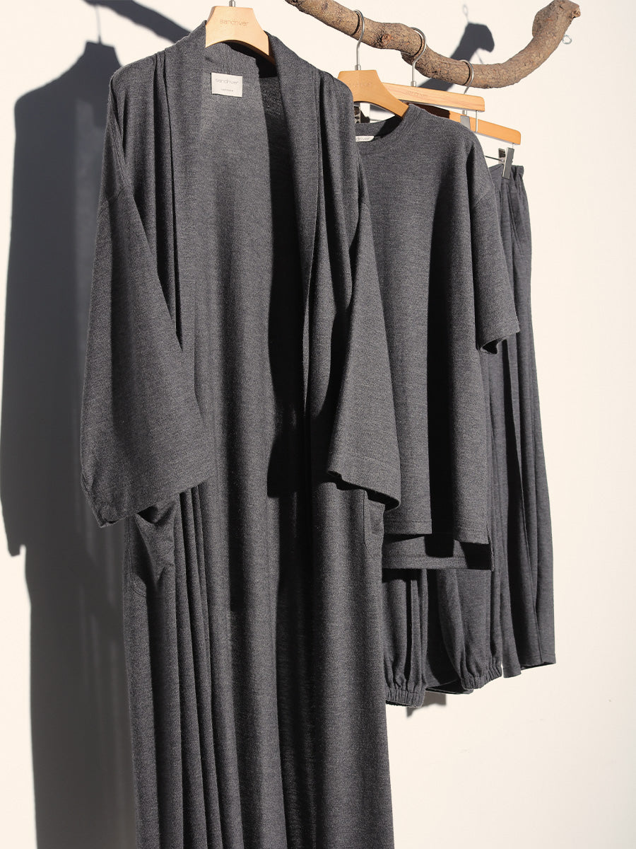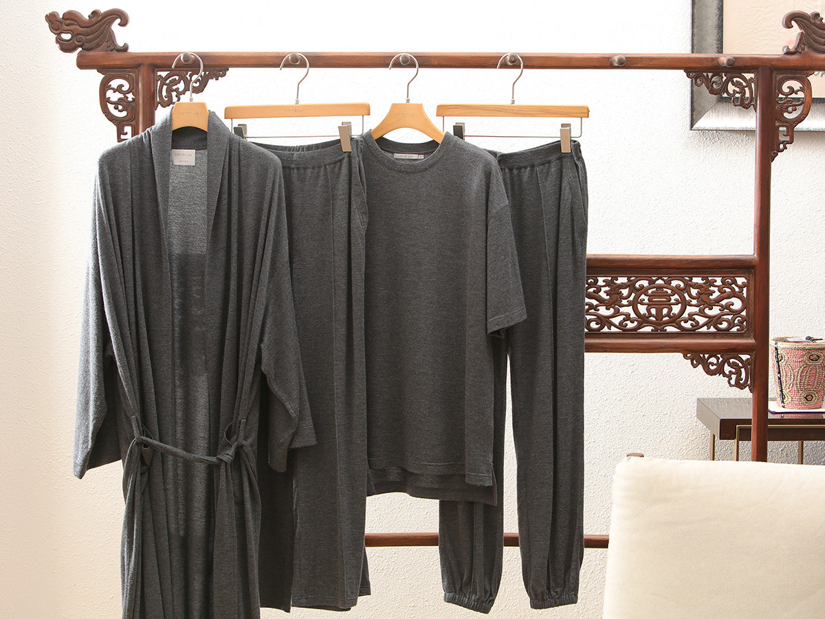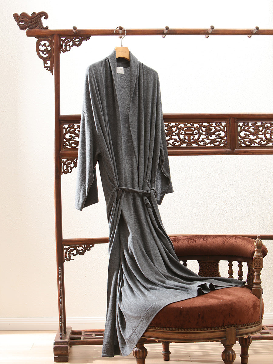 Indulge in ultimate comfort with our exquisite pure cashmere robe, adorned with a relaxed silhouette.
